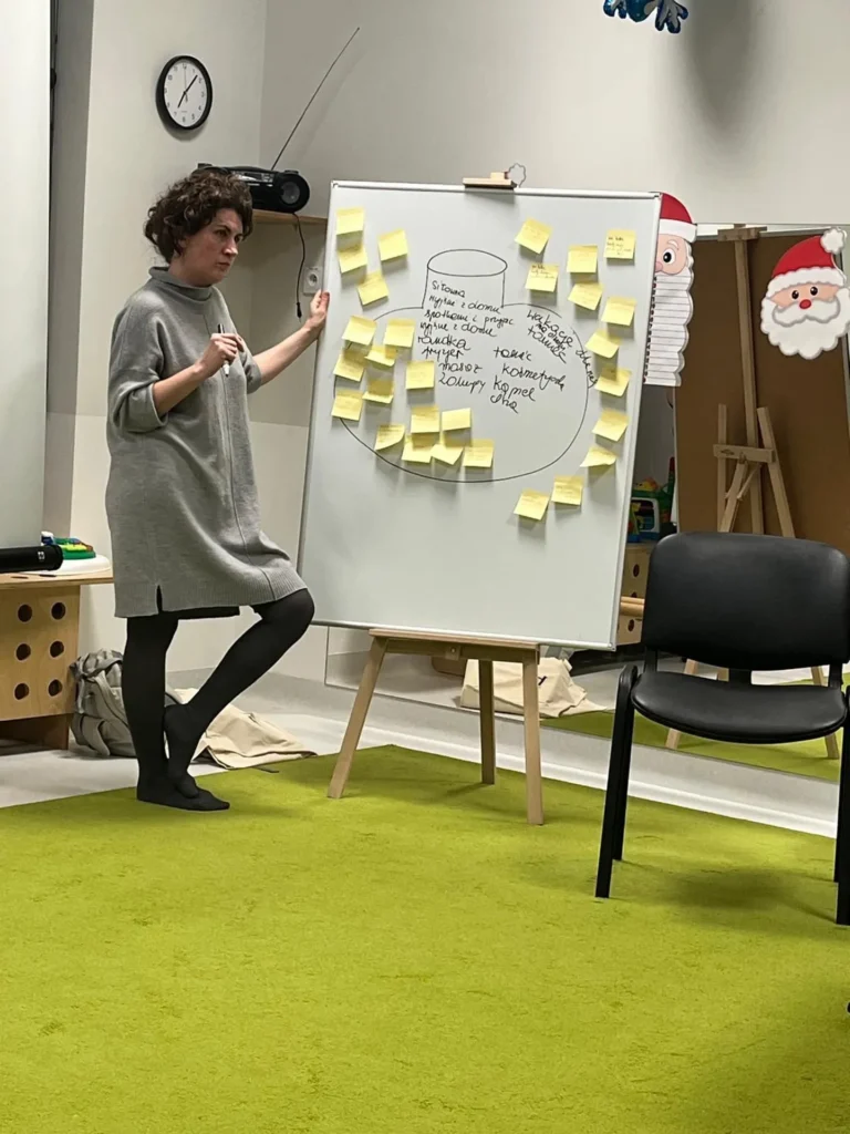 Cykl spotkań skierowany jest przede wszystkim do rodziców maluchów do 3. roku życia – zarówno tych, które już korzystają z opieki żłobkowej, jak i tych, które przygotowują się do adaptacji. W ramach warsztatów omawiamy tematy najważniejsze z perspektywy wczesnego rozwoju: jak wspierać dziecko w procesie adaptacji i rozpoznawać jego emocje, jak stymulować rozwój mowy, w jaki sposób reagować na przejawy agresji, jak budować samodzielność malucha, a także jak układać zdrowy rytm dnia. Rozmawiamy też o wpływie ekranów na rozwój, różnorodnych inteligencjach dziecka oraz o roli zabawy w jego codziennym życiu.